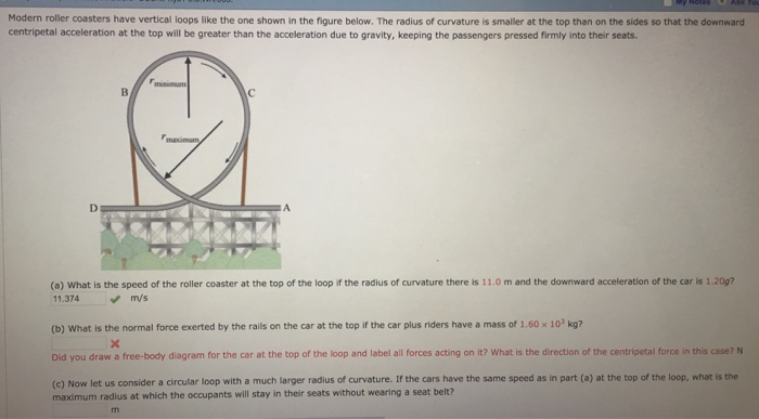 Solved Modern Roller Coasters Have Vertical Loops Like Th