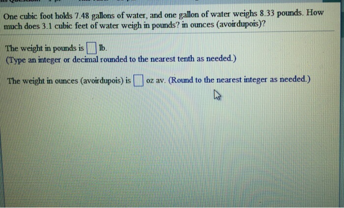 Solved One Cubic Foot Holds 7 48 Gallons Of Water And One